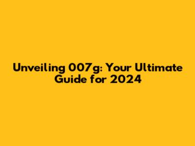 Unveiling 007g: Your Ultimate Guide for 2024