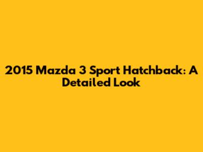 Hey guys! Let's dive deep into the 2015 Mazda 3 Sport Hatchback, a car that's still turning heads and proving its worth years after its release. We're going to cover everything from its sleek design and performance to its features and what you should consider if you're thinking about snagging one. This car is known for its blend of sporty handling, fuel efficiency, and modern design. It's a popular choice for those wanting a fun-to-drive vehicle without breaking the bank. So, whether you're a seasoned car enthusiast or just starting to explore the world of automobiles, stick around. We'll explore why the 2015 Mazda 3 Sport Hatchback has maintained its reputation as a solid contender in the compact car market. We will explore its key features, performance metrics, and potential areas to keep an eye on when considering a purchase. Let's get into it!