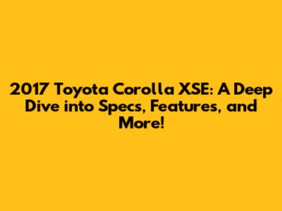 Hey guys! Ever wondered what made the 2017 Toyota Corolla XSE such a popular choice? Well, you're in the right place! We're gonna dive deep into the specs, features, and everything you need to know about this stylish and sporty compact car. Whether you're a potential buyer, a car enthusiast, or just curious, this article is for you. Get ready to explore what makes the 2017 Corolla XSE stand out in a sea of other vehicles. We'll cover everything from its engine and performance to its interior, technology, and safety features. So, buckle up and let's get started!