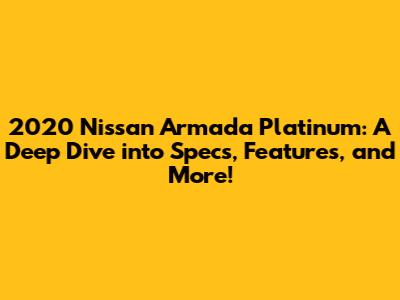 Hey car enthusiasts! Let's dive deep into the 2020 Nissan Armada Platinum, a full-size SUV that's all about space, comfort, and a touch of luxury. If you're looking for a vehicle that can haul the family, tow a boat, and do it all in style, the Armada Platinum might just be your perfect match. We're going to break down everything you need to know, from the engine specs to the interior goodies, so you can decide if this beast is right for you. Get ready to explore the impressive capabilities and features that make the 2020 Armada Platinum a standout in its class.