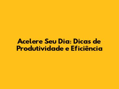 Acelere Seu Dia: Dicas De Produtividade E Eficiência