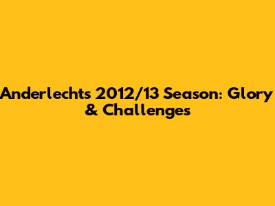 Anderlecht's 2012/13 Season: Glory & Challenges