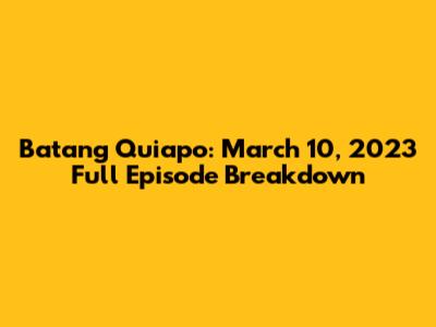 Hey guys! Let's dive into the explosive happenings of Batang Quiapo's full episode from March 10, 2023. This episode was a real rollercoaster, filled with drama, action, and those moments that really tug at your heartstrings. We're going to break down all the major plot points, character developments, and that suspenseful ending that had everyone talking. So, grab some popcorn, settle in, and let's get started. Remember, this recap is designed to be comprehensive, ensuring you don't miss a single detail from this must-watch episode.
