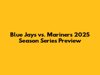 Blue Jays Vs. Mariners 2025: Season Series Preview