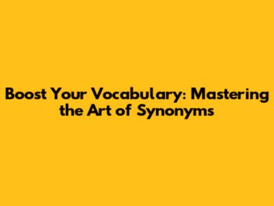 Boost Your Vocabulary: Mastering The Art Of Synonyms