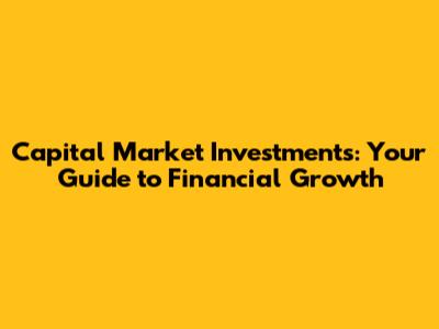 Capital Market Investments: Your Guide To Financial Growth