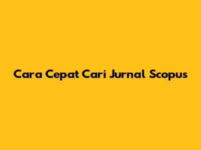 Cara Cepat Cari Jurnal Scopus