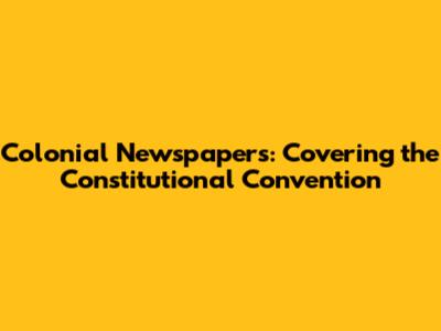 Colonial Newspapers: Covering The Constitutional Convention