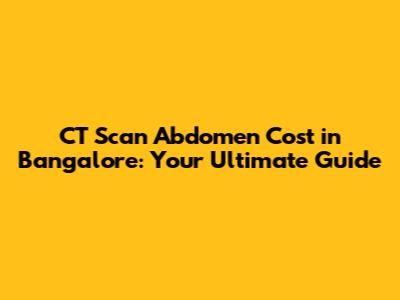 CT Scan Abdomen Cost In Bangalore: Your Ultimate Guide