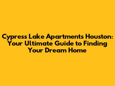 Hey there, future residents of Houston! Are you on the hunt for a fantastic place to call home? Look no further! This article is your ultimate guide to Cypress Lake Apartments Houston, a premier living destination offering comfort, convenience, and a vibrant community. We'll dive deep into everything you need to know, from the amenities and floor plans to the neighborhood and how to secure your spot. So, grab a coffee (or your beverage of choice) and let's explore why Cypress Lake Apartments might be the perfect fit for you, guys!