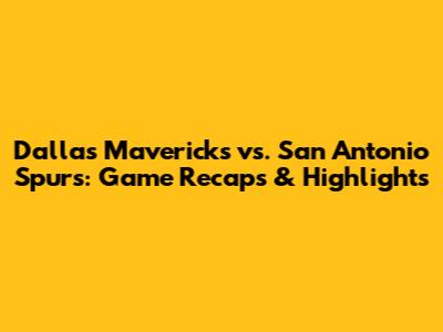Dallas Mavericks Vs. San Antonio Spurs: Game Recaps & Highlights