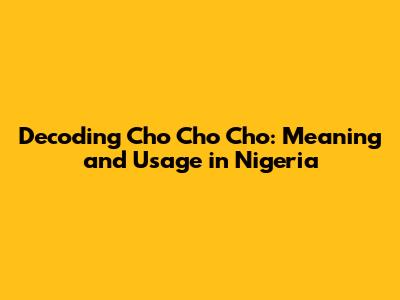 Decoding 'Cho Cho Cho': Meaning And Usage In Nigeria