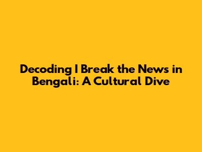 Decoding 'I Break The News' In Bengali: A Cultural Dive