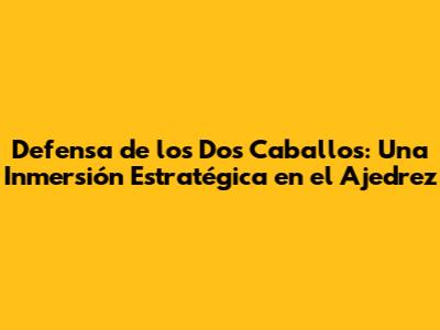 La Defensa de los Dos Caballos es una apertura apasionante y llena de posibilidades. Desde sus orígenes en el ajedrez romántico hasta su uso en el ajedrez moderno, esta apertura ha demostrado ser una herramienta efectiva y emocionante para los jugadores de todos los niveles. Al comprender los principios, las tácticas y las estrategias clave, y al practicar constantemente, puedes dominar esta apertura y agregarla a tu arsenal. Así que, ¡no esperes más! Sumérgete en el mundo de la Defensa de los Dos Caballos y experimenta la emoción del ajedrez en su máxima expresión. ¡Que tus piezas te guíen hacia la victoria! Recuerda, la clave del éxito reside en la práctica constante, el análisis y la adaptabilidad. ¡Buena suerte y a jugar!