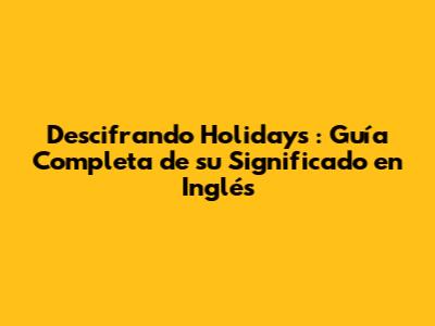 Descifrando *Holidays*: Guía Completa De Su Significado En Inglés