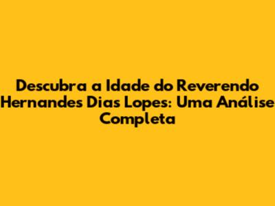 Descubra A Idade Do Reverendo Hernandes Dias Lopes: Uma Análise Completa