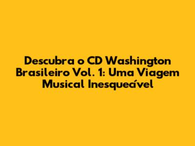 E aÃ, galera da música! Se você é fã de verdade e curte um som que tem alma, história e aquele tempero brasileiro autêntico, então prepare-se, porque hoje vamos mergulhar de cabeça em um tesouro: o CD Washington Brasileiro Vol. 1. Sabe aquele álbum que a gente ouve e sente que o tempo parou, mas a energia só aumenta? É exatamente isso! Este não é só mais um CD, é um portal para um universo de ritmos que moldaram a nossa identidade musical. Washington Brasileiro é um nome que ecoa nos corredores da música popular brasileira, e este volume de estreia é a prova viva do seu talento inquestionável e da sua capacidade de tocar o coração de quem ouve. Vamos desvendar juntos o que faz deste álbum um clássico atemporal e por que ele ainda hoje mexe tanto com a gente.