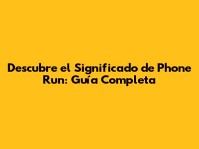 Descubre El Significado De Phone Run: Guía Completa