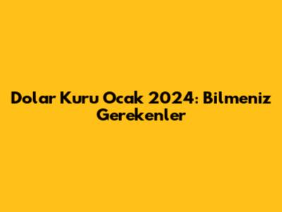 Dolar Kuru Ocak 2024: Bilmeniz Gerekenler