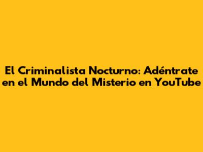 El Criminalista Nocturno: Tu Guía De Misterio En YouTube