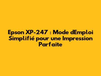 Epson XP-247 : Mode D'Emploi Simplifié Pour Une Impression Parfaite