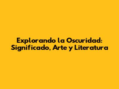 Explorando La Oscuridad: Significado, Arte Y Literatura