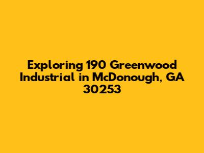 Hey guys, let's dive into the details of 190 Greenwood Industrial in McDonough, GA 30253! This address is a hub of activity in the heart of Georgia, and we're going to break down what makes it tick. We will explore its significance, the types of businesses that call it home, and what it offers to the local economy. Whether you're a business owner, a potential investor, or just curious about this bustling industrial park, you're in the right place. We'll navigate through the key aspects, highlighting the strategic advantages and the vibrant community that thrives within the walls of 190 Greenwood Industrial. Get ready to uncover the ins and outs of this dynamic location, and discover why it's a vital part of McDonough's business landscape. Let's get started, shall we?