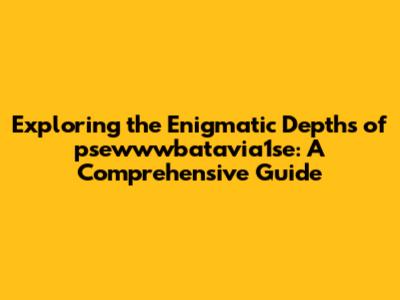 Exploring The Depths Of Psewwwbatavia1se: A Comprehensive Guide