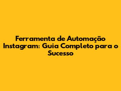 Ferramenta De Automação Instagram: Guia Completo Para O Sucesso