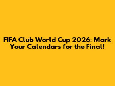 FIFA Club World Cup 2026: Final Match Date Revealed!