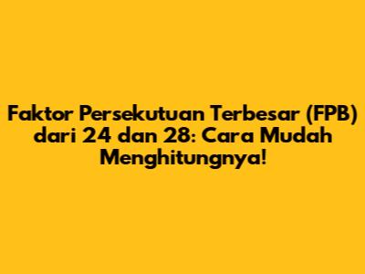 Hay guys! Kalian tau gak sih apa itu FPB? FPB itu singkatan dari Faktor Persekutuan Terbesar. Nah, kali ini kita bakal bahas cara mudah menghitung FPB dari 24 dan 28. Dijamin setelah baca artikel ini, kalian bakal jago banget deh nyari FPB! Yuk, simak terus!