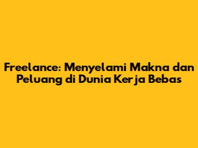 Freelance adalah dunia yang menawarkan peluang tak terbatas bagi mereka yang siap untuk mengambil inisiatif. Makna freelance terletak pada kebebasan, fleksibilitas, dan kemandirian yang ditawarkannya. Namun, kesuksesan dalam dunia freelance menuntut disiplin, kerja keras, dan kemampuan untuk terus belajar. Dengan memahami makna freelance, memanfaatkan peluang yang ada, dan menerapkan tips sukses yang tepat, kalian bisa membangun karir freelance yang sukses dan memuaskan. Jadi, tunggu apa lagi, guys? Ambil langkah pertama kalian menuju dunia freelance yang penuh potensi! Ingatlah, perjalanan ini mungkin penuh tantangan, tetapi dengan dedikasi dan semangat yang tepat, kesuksesan ada di tangan kalian. Selamat mencoba! Dan yang paling penting, jangan takut untuk berinovasi dan terus mengembangkan diri. Dunia freelance terus berubah, jadi teruslah beradaptasi dan jadilah yang terbaik dalam bidang kalian. Semangat!