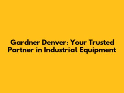 Gardner Denver: Your Trusted Partner In Industrial Equipment