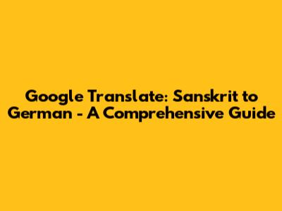 Google Translate: Sanskrit To German - A Comprehensive Guide