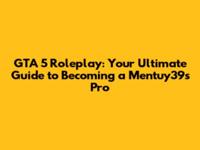 GTA 5 Roleplay: Your Guide To Becoming A Mentuy39s Pro
