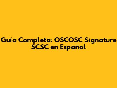 Guía Completa: OSCOSC Signature SCSC En Español