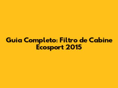 Guia Completo: Filtro De Cabine Ecosport 2015
