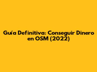 Guía Definitiva: Conseguir Dinero En OSM (2022)