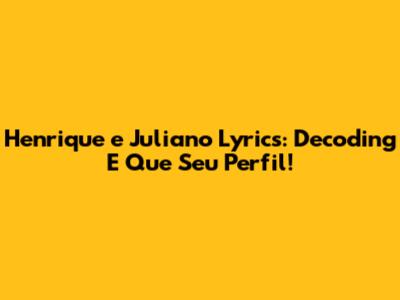 Henrique E Juliano Lyrics: Decoding 'E Que Seu Perfil'!