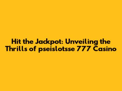 Hit The Jackpot: Unveiling The Thrills Of Pseislotsse 777 Casino