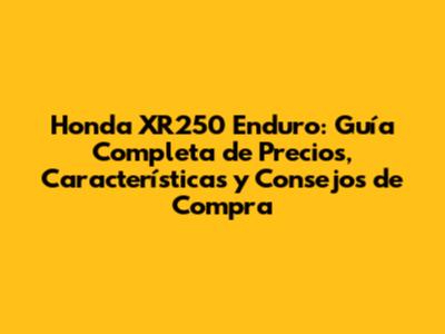 Honda XR250 Enduro: Precios, Características Y Dónde Comprar