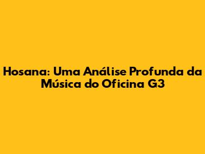 "Hosana" do Oficina G3 é muito mais do que uma simples música; é um hino de adoração que tocou e continua a tocar milhões de corações. Sua história, sua letra, sua melodia e seu impacto cultural a tornaram uma obra-prima da música gospel brasileira. Através da análise desta música, podemos apreciar a habilidade do Oficina G3 em criar algo que ressoa tão profundamente com as pessoas. Que "Hosana" continue a ser uma fonte de inspiração, fé e esperança para todos nós.
