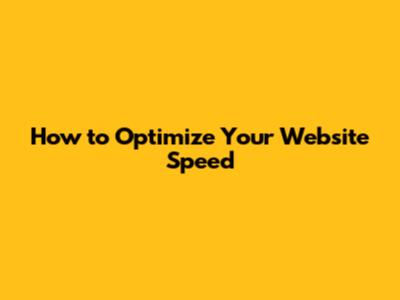 How To Optimize Your Website Speed