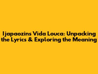 Ijapaozin's 'Vida Louca': English Lyrics & Meaning Explained