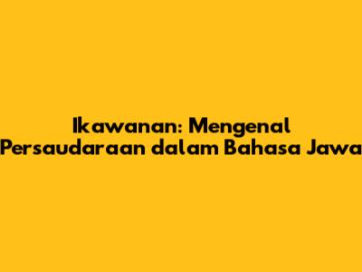 Ikawanan, guys, adalah istilah dalam bahasa Jawa yang menggambarkan persaudaraan atau persahabatan. Bahasa Jawa, sebagai salah satu bahasa daerah yang kaya akan budaya dan filosofi, memiliki banyak sekali kosakata yang mendalam maknanya. Memahami ikawanan tidak hanya sekadar mengetahui artinya, tetapi juga memahami nilai-nilai yang terkandung di dalamnya. Dalam artikel ini, kita akan membahas lebih dalam tentang apa itu ikawanan, bagaimana konsep ini tercermin dalam kehidupan masyarakat Jawa, dan mengapa persaudaraan begitu penting dalam budaya Jawa.