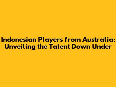 Indonesian Players In Australia: Who Are They?