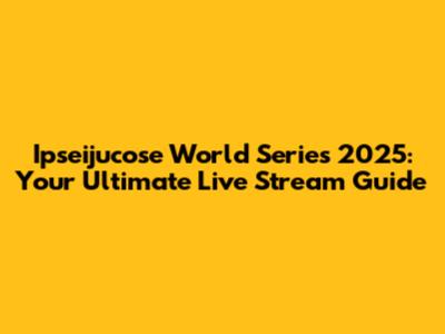 Ipseijucose World Series 2025: Your Live Stream Guide