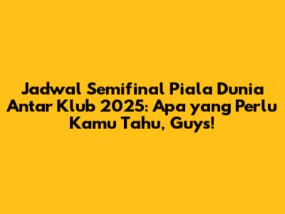 Piala Dunia Antar Klub 2025 semakin dekat, dan semua mata tertuju pada jadwal semifinal yang sangat dinanti-nantikan! Kalian penasaran kan kapan pertandingan seru ini akan digelar dan tim mana saja yang akan bertanding? Tenang, guys, artikel ini akan membahas tuntas jadwal semifinal Piala Dunia Antar Klub 2025, lengkap dengan informasi penting lainnya. Siap-siap untuk mencatat tanggalnya dan bersiap menyaksikan pertandingan sepak bola kelas dunia!