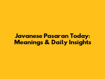 Javanese Pasaran Today: Meanings & Daily Insights