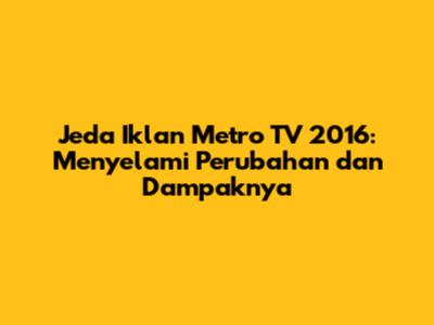 Guys, pernah nggak sih kalian lagi asyik nonton berita penting di Metro TV, eh tiba-tiba jeda iklan muncul? Pasti kesel banget kan! Nah, kali ini kita mau ngulik soal jeda iklan Metro TV tahun 2016. Kenapa sih penting banget buat kita bahas? Karena di tahun itu, ada beberapa perubahan yang mungkin nggak kita sadari tapi punya dampak lho. Kita bakal kupas tuntas, mulai dari apa aja yang berubah, kenapa itu terjadi, sampai gimana dampaknya buat kita sebagai penonton setia. Siap-siap ya, karena kita bakal menyelami dunia periklanan di salah satu stasiun TV berita terkemuka di Indonesia. Perubahan jeda iklan Metro TV 2016 ini bukan sekadar soal durasi atau frekuensi, tapi bisa jadi mencerminkan strategi bisnis dan cara stasiun TV berinteraksi dengan penontonnya. Jadi, mari kita mulai petualangan kita mengungkap misteri di balik jeda-jeda iklan yang seringkali bikin gregetan tapi juga jadi sumber pendapatan stasiun TV itu sendiri.